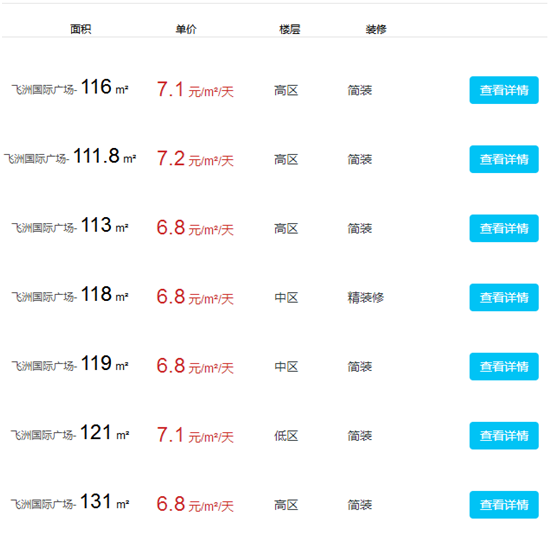 飛洲國際寫字樓出租及價格