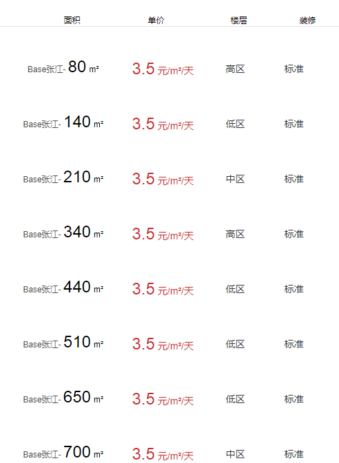 base張江辦公室出租及租金