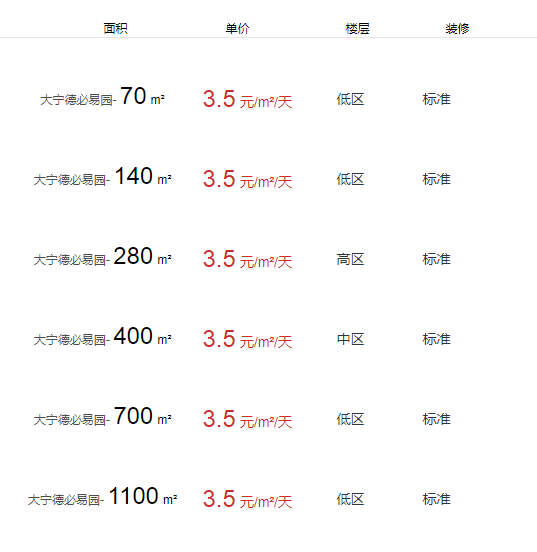 租金: 2.2-3.5元/平方米/天