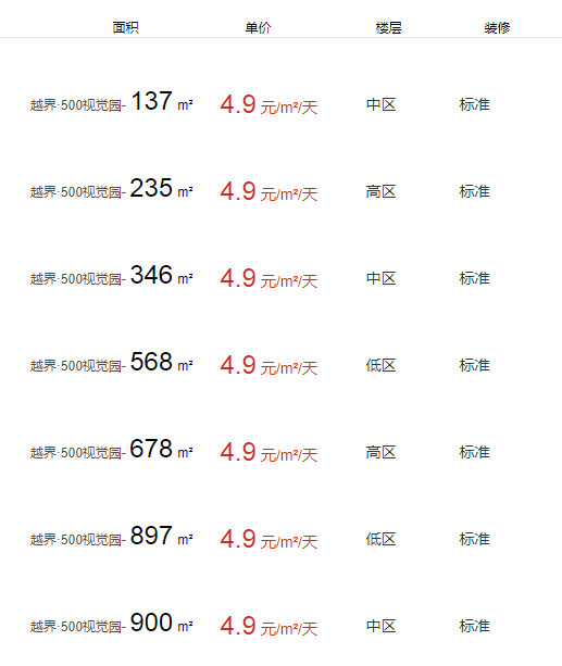 越界·500視覺園辦公室出租及租金