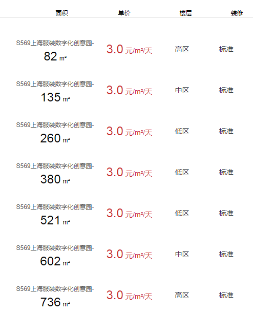 S569上海服裝數(shù)字化創(chuàng)意園辦公室出租及租金