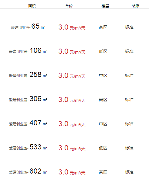 愛建創(chuàng)業(yè)園辦公室出租及租金