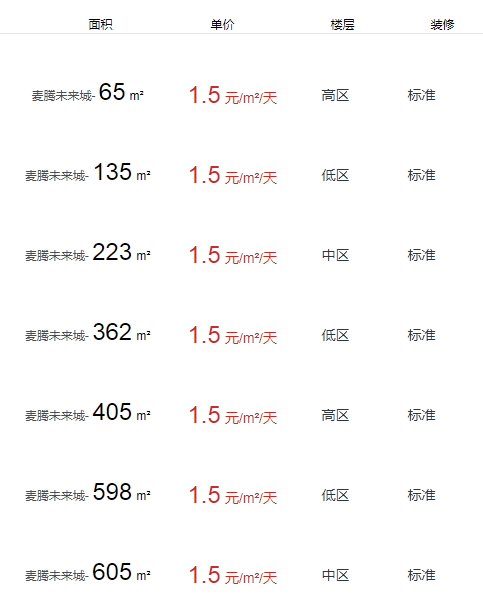 麥騰未來城辦公室出租及租金