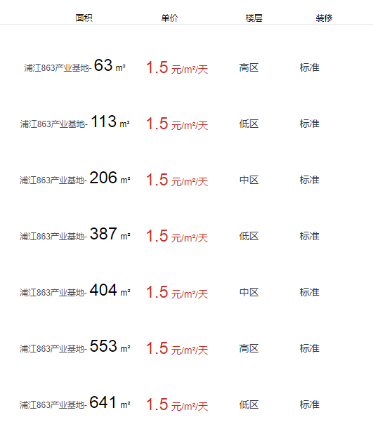 浦江863產(chǎn)業(yè)基地辦公室出租及租金