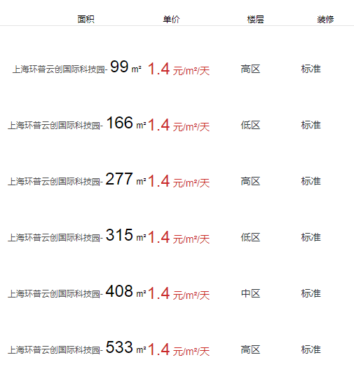 上海環(huán)普云創(chuàng)國際科技園辦公室出租及租金