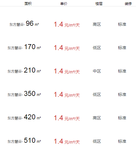 東方慧谷辦公室出租及租金