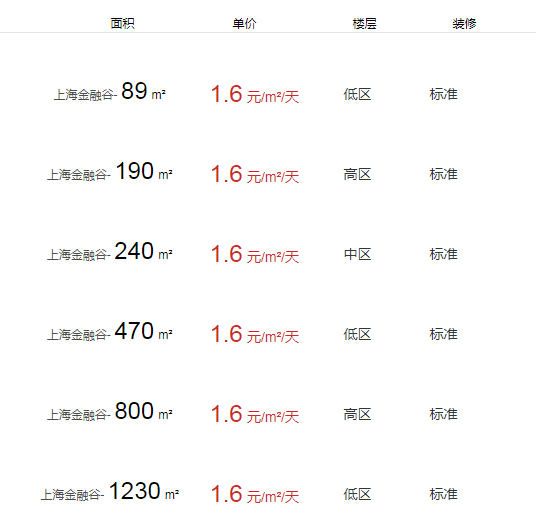 上海金融谷辦公室出租及價格