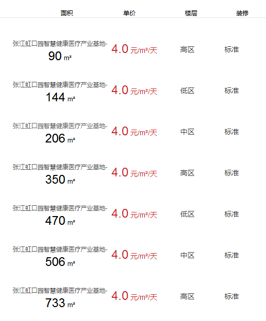張江虹口園智慧健康醫(yī)療產(chǎn)業(yè)基地辦公室出租及租金