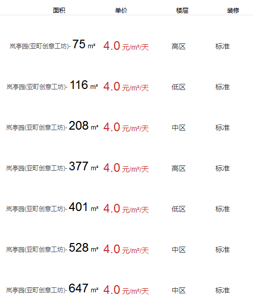 嵐亭園(亞町創(chuàng)意工坊)辦公室出租及租金