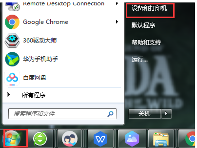 1、打開電腦桌面,點擊左下角的Windows菜單,選擇“設備和打印機”,如下圖所示。