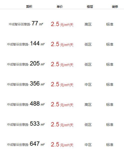 中成智谷創(chuàng)意園辦公室出租及租金