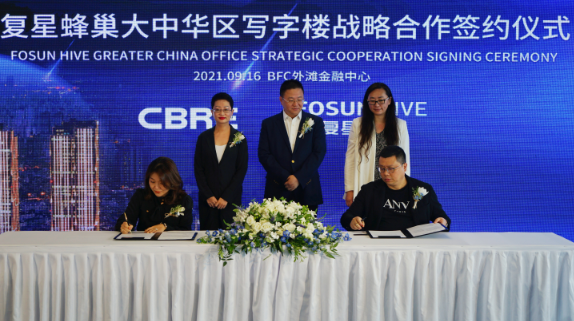 簽約儀式上,復星全球合伙人、復星蜂巢高級副總裁、BFC外灘金融中心董事長兼CEO陳健豪與兩家代理行代表共同簽署戰(zhàn)略合作協(xié)議,開啟復星蜂巢全國寫字樓產(chǎn)業(yè)新布局。