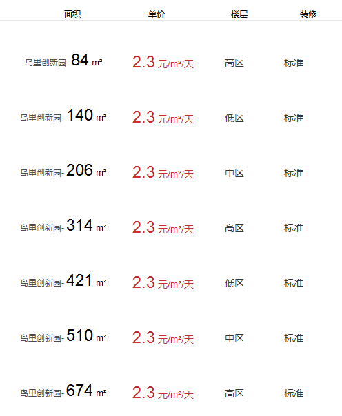 島里創(chuàng)新園辦公室出租及租金