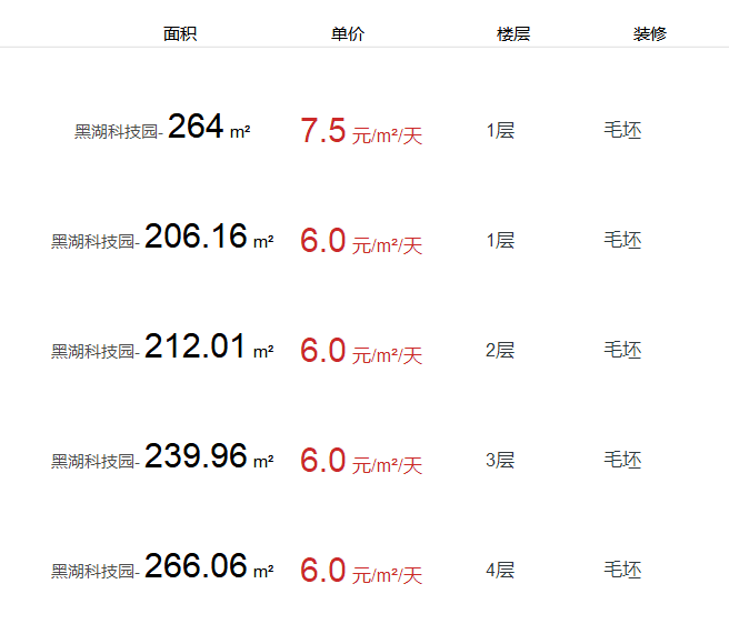 黑湖科技園辦公室出租及租金