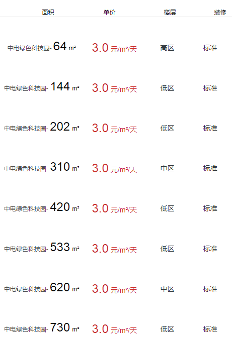 中電綠色科技園辦公室出租及租金
