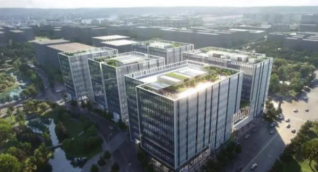 項(xiàng)目總建筑面積約14萬方,其中包括約8.3萬平方米辦公建筑面積,呈現(xiàn)地上9層,地下3層的5棟生態(tài)辦公集群,以及約8000平方米商業(yè)建筑面積,700個(gè)停車位。